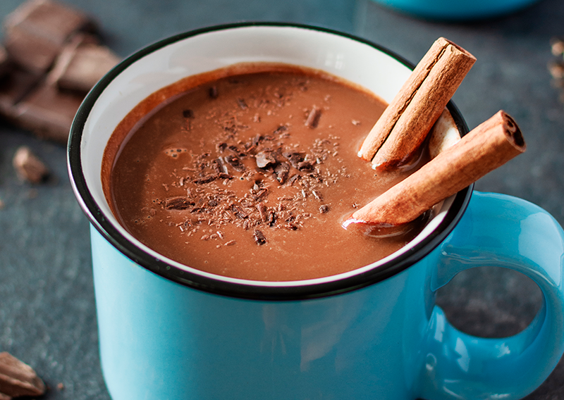 - Adicione o chocolate, o cacau em pó, a canela e o café (opcional)